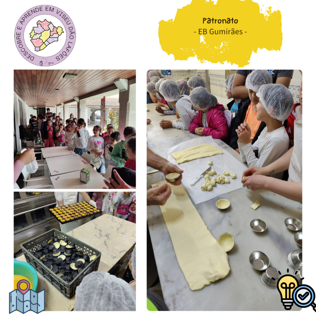 Nesse mesmo dia, os alunos do EB de Gumirães, também do Município de Viseu, deslocaram-se até ao Patronato, no Município de Mangualde, para descobrir os sabores e a história dos emblemáticos Pastéis de Feijão, uma doce tradição que faz parte da identidade local.
